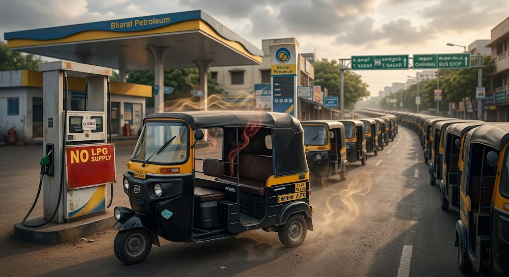 The situation in Chennai has become a bit difficult over the past few days, especially for people who depend on auto-rickshaws for daily travel. Usually, autos are seen as an easy and affordable option for short distances or last-mile connectivity, but right now things are not that smooth. Because of rising fuel prices and shortage, both drivers and passengers are facing problems in their own way.